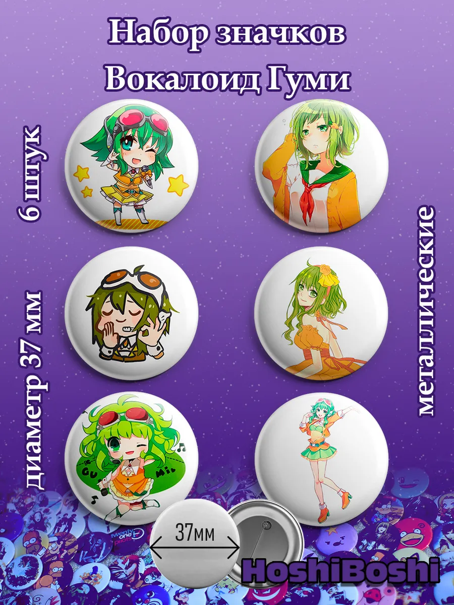 Набор из 6 металлических значков с изображениями Вокалоидов ( Vocaloid ).