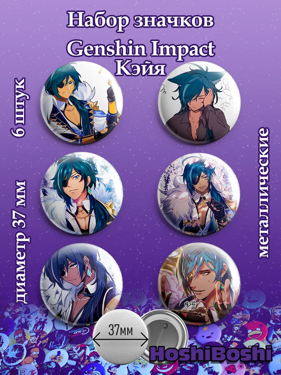 Набор из 6 металлических значков с изображениями из игры Геншин Импакт ( Genshin Impact ).