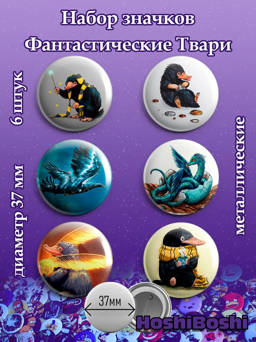 Набор из 6 металлических значков с изображениями из фильмов Фантастические твари ( Fantastic Beasts ).