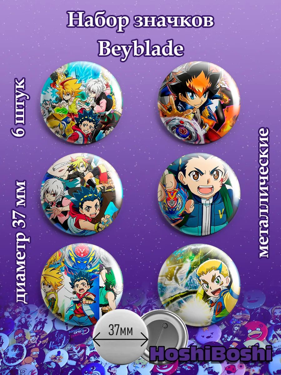 Набор из 6 металлических значков с изображениями из аниме Бейблэйд ( Beyblade ).