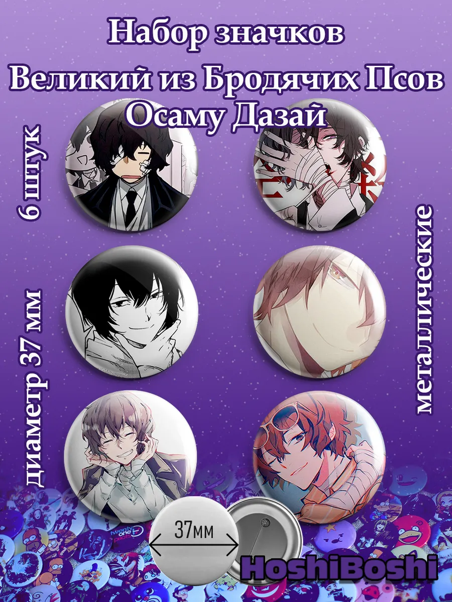 Набор из 6 металлических значков с изображениями из аниме Великий из Бродячих псов ( Bungo Stray Dogs ).