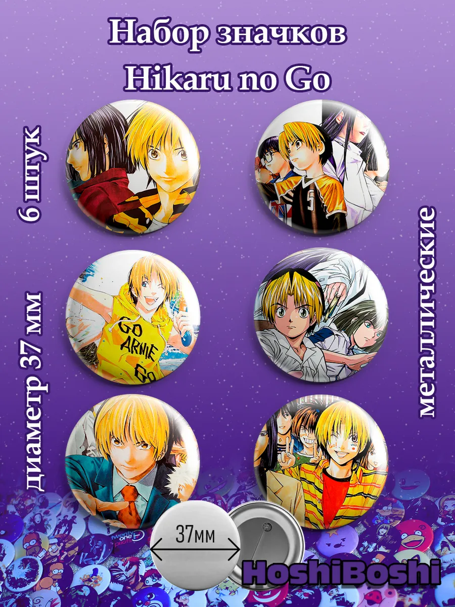 Набор из 6 металлических значков с изображениями из аниме Хикару и Го ( Hikaru no Go ).
