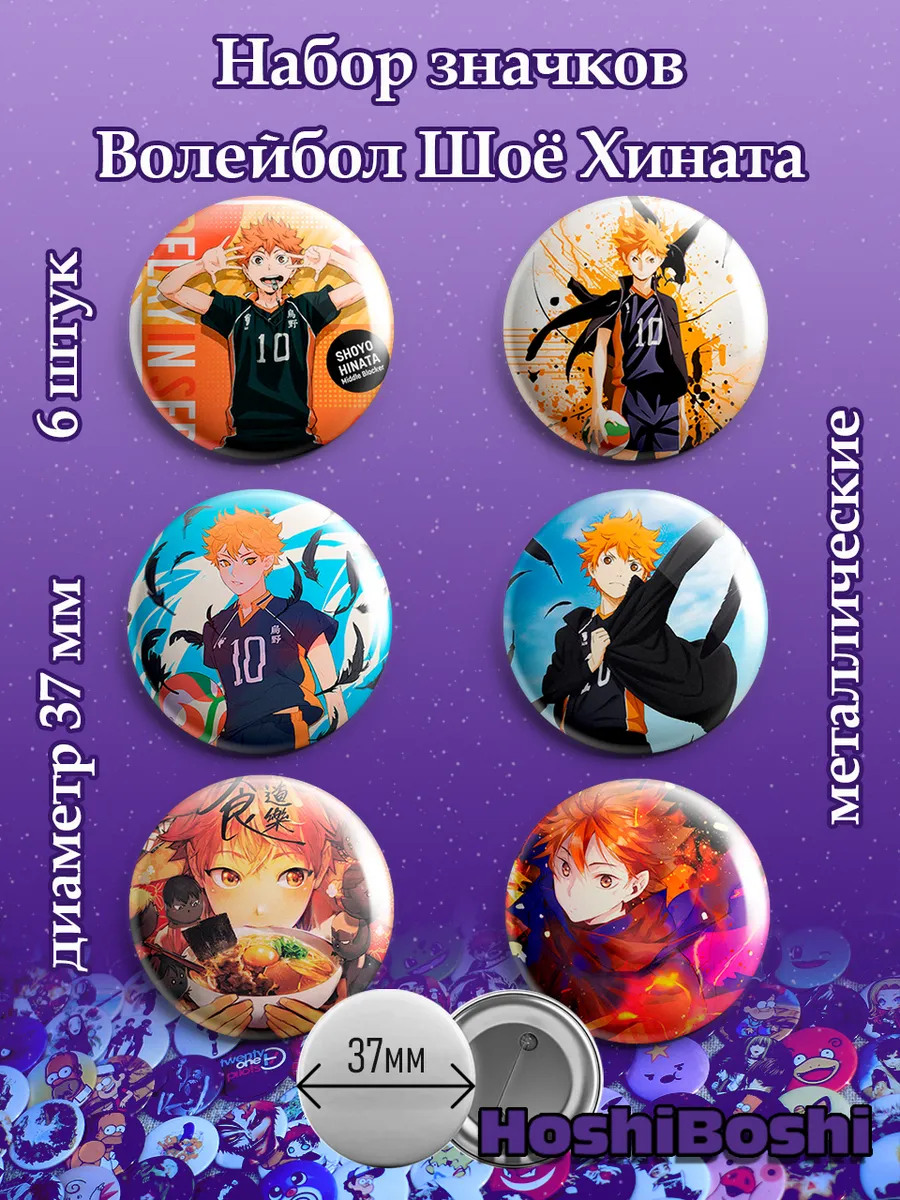 Набор из 6 металлических значков с изображениями из аниме Волейбол ( Haikyu!! ).