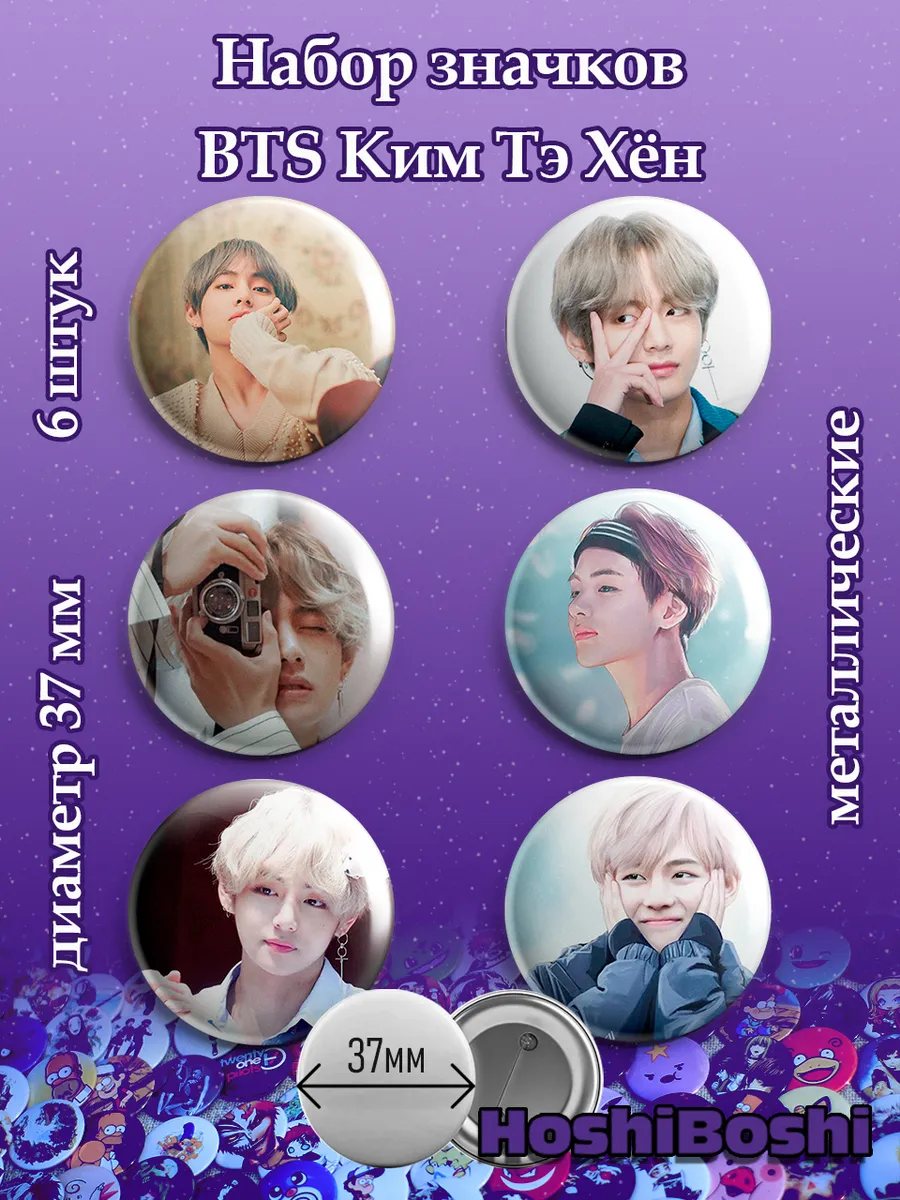 Набор из 6 металлических значков с изображениями с Кей-Поп группой БТС ( BTS ).