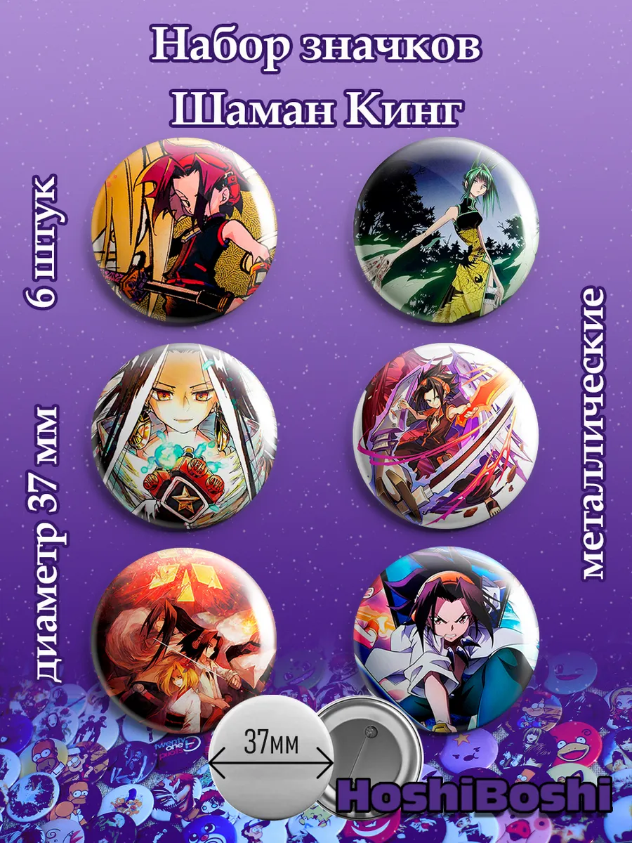 Набор из 6 металлических значков с изображениями из аниме Шаман Кинг ( Shaman King ).