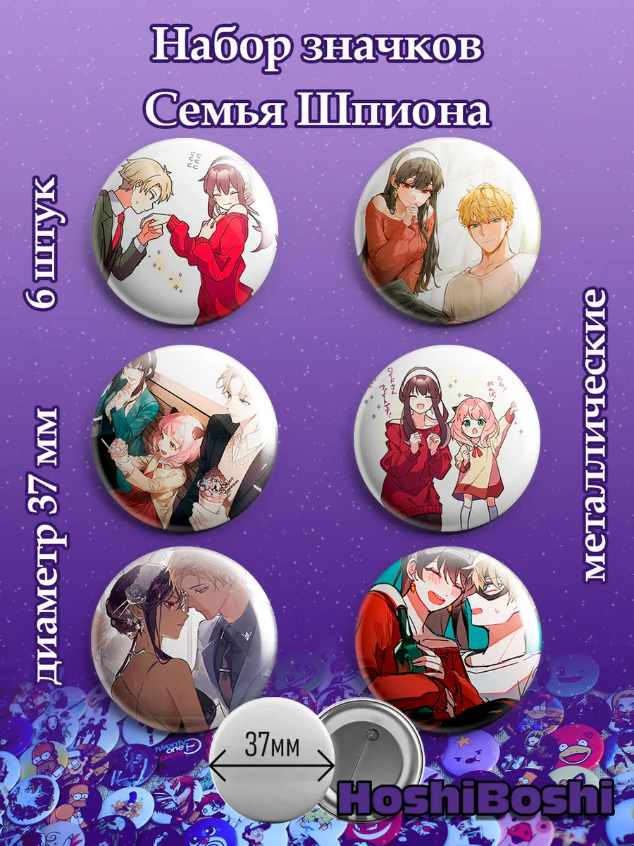 Набор из 6 металлических значков с изображениями из аниме Семья шпиона ( Spy × Family ).