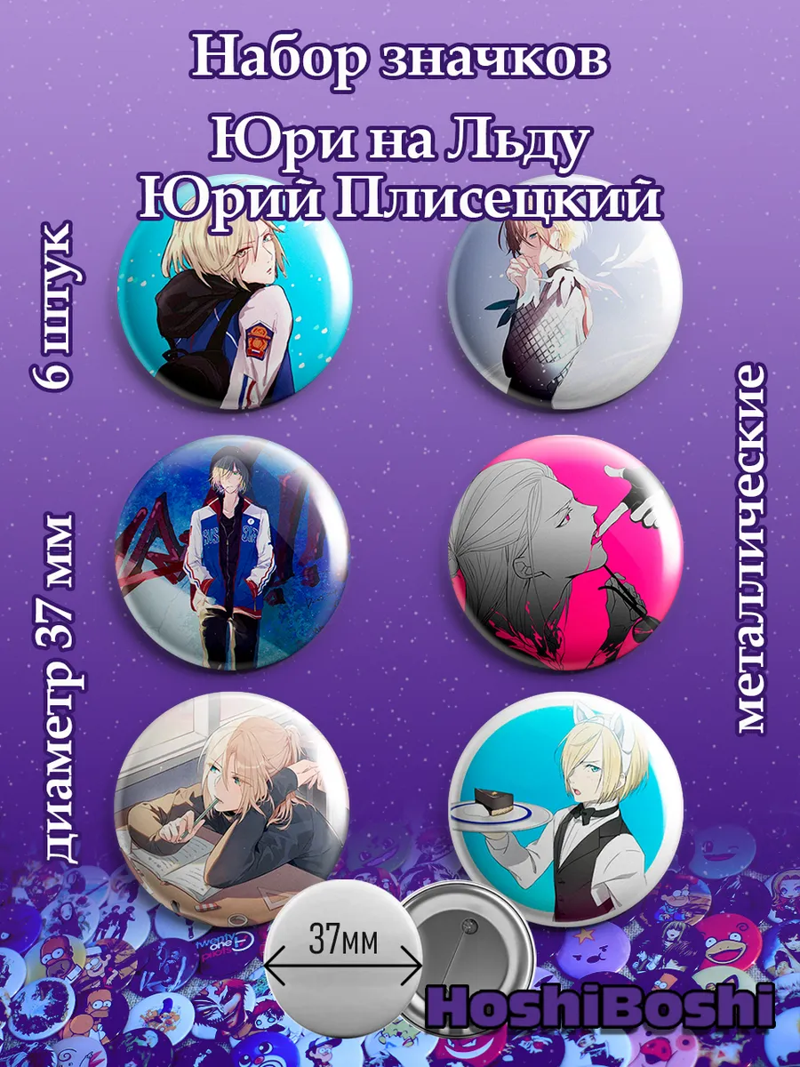 Набор из 6 металлических значков с изображениями из аниме Юри на льду ( Yuri on Ice ).