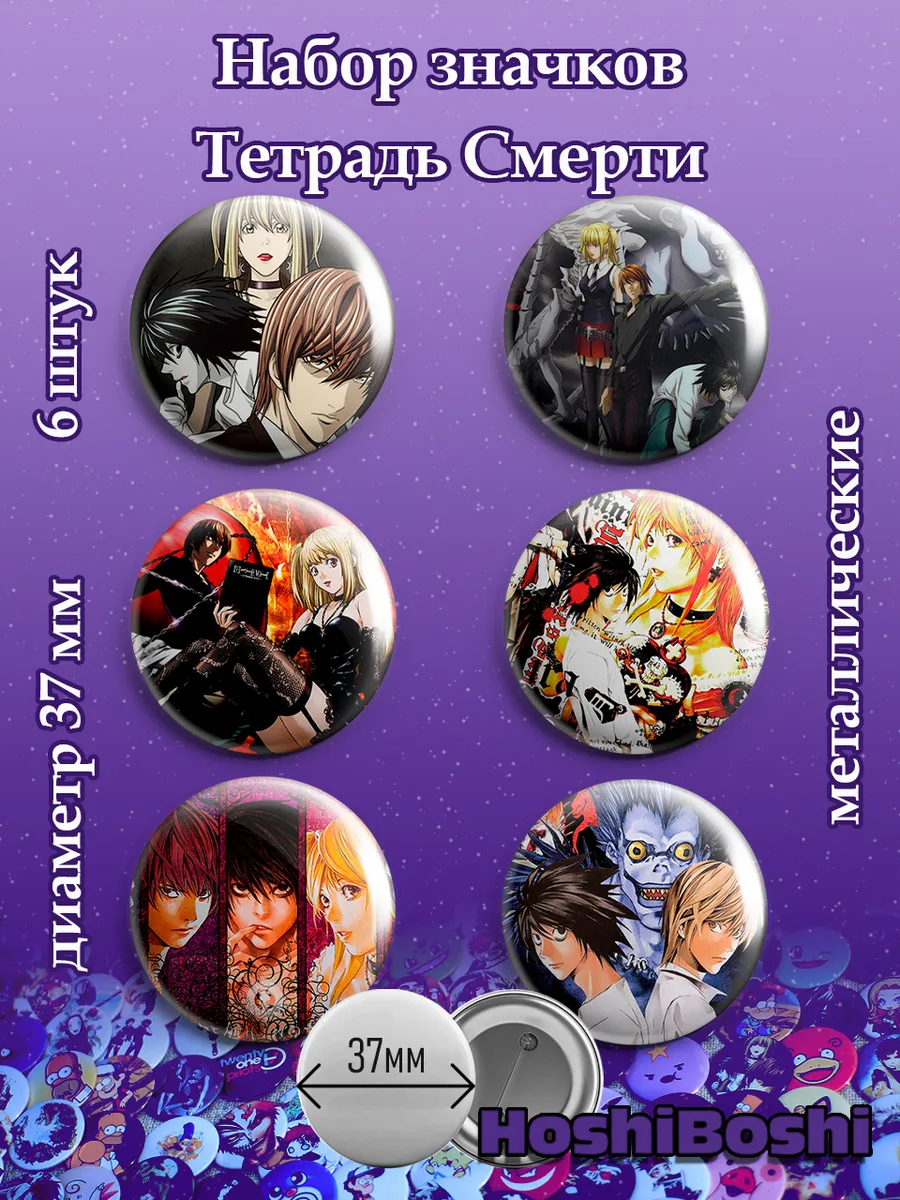 Набор из 6 металлических значков с изображениями из аниме Тетрадь смерти ( Death Note ).