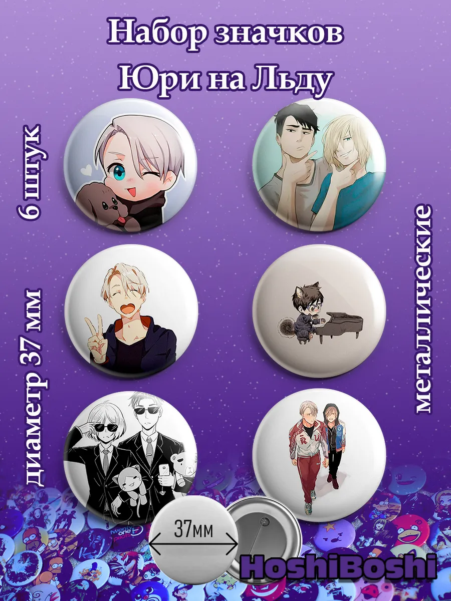 Набор из 6 металлических значков с изображениями из аниме Юри на льду ( Yuri on Ice ).