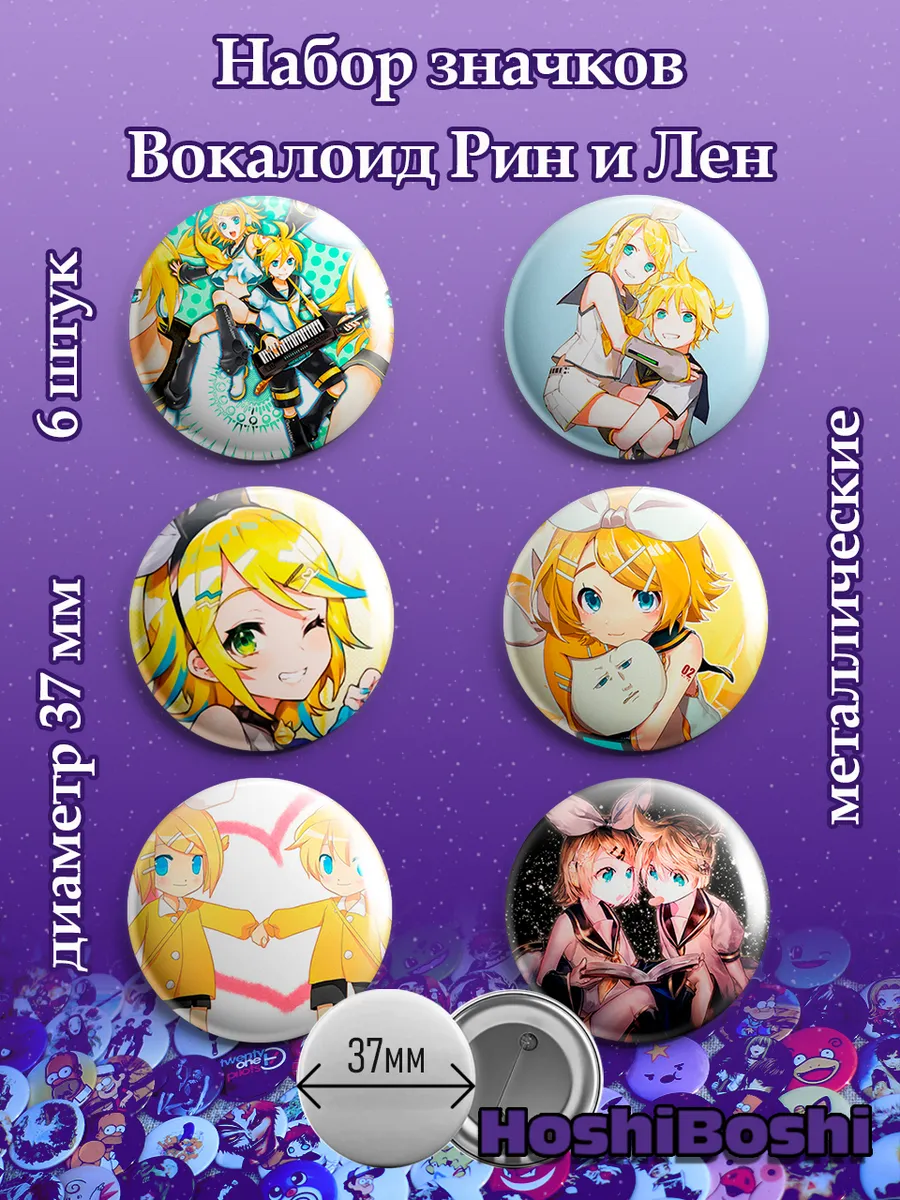 Набор из 6 металлических значков с изображениями Вокалоидов ( Vocaloid ).
