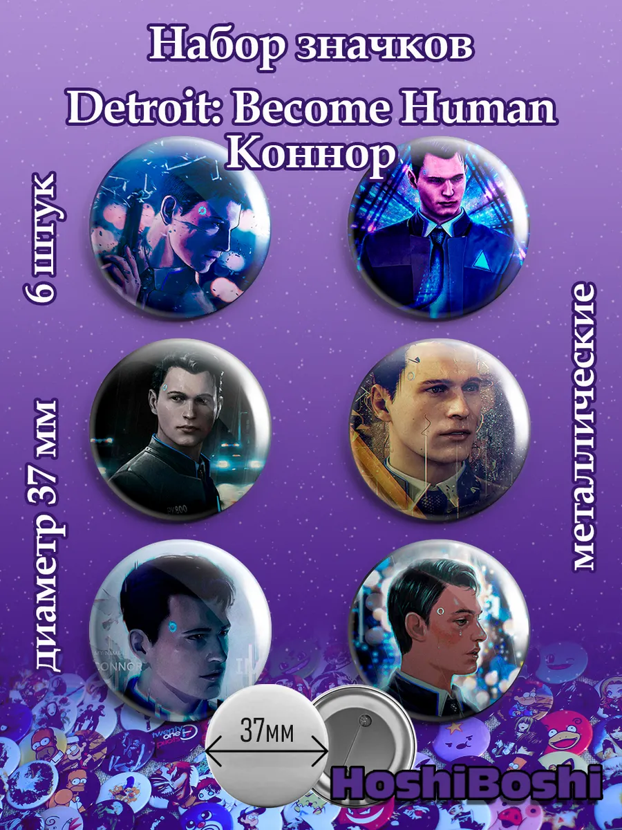 Набор из 6 металлических значков с изображениями из игры Детройт: Стать человеком ( Detroit: Become Human ).