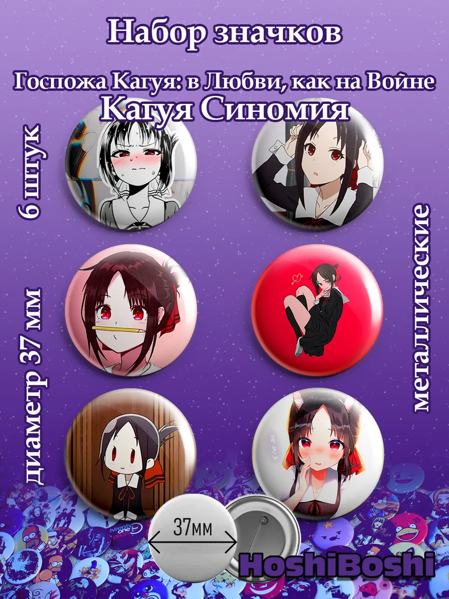 Набор из 6 металлических значков с изображениями из аниме Госпожа Кагуя: в любви, как на войне ( Kaguya-sama wa Kokurasetai: Tensai-tachi no Renai Zunousen ).