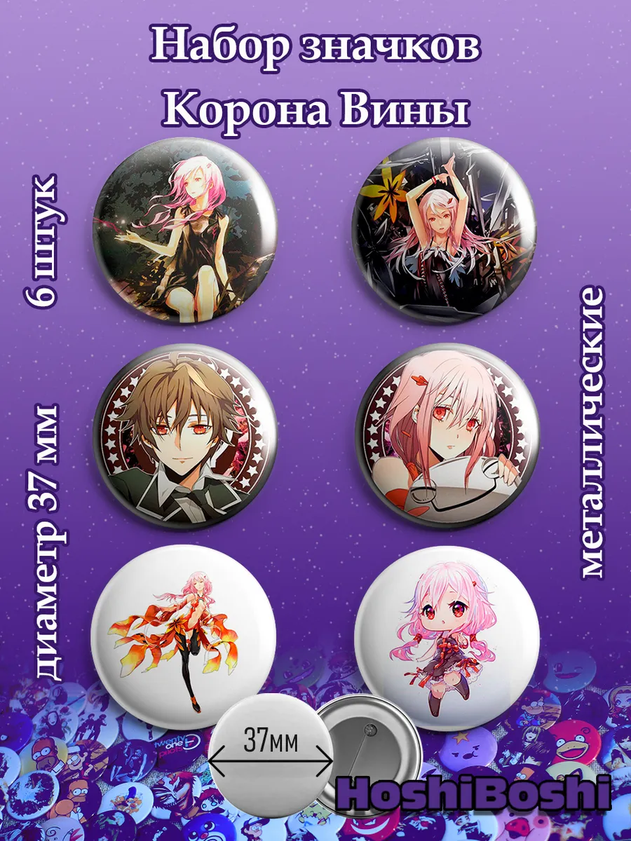 Набор из 6 металлических значков с изображениями из аниме Корона Вины ( Guilty Crown ).