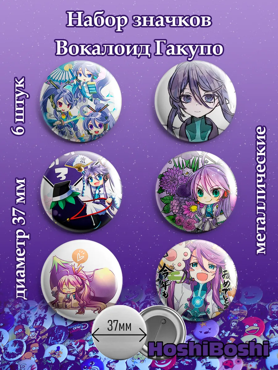 Набор из 6 металлических значков с изображениями Вокалоидов ( Vocaloid ).