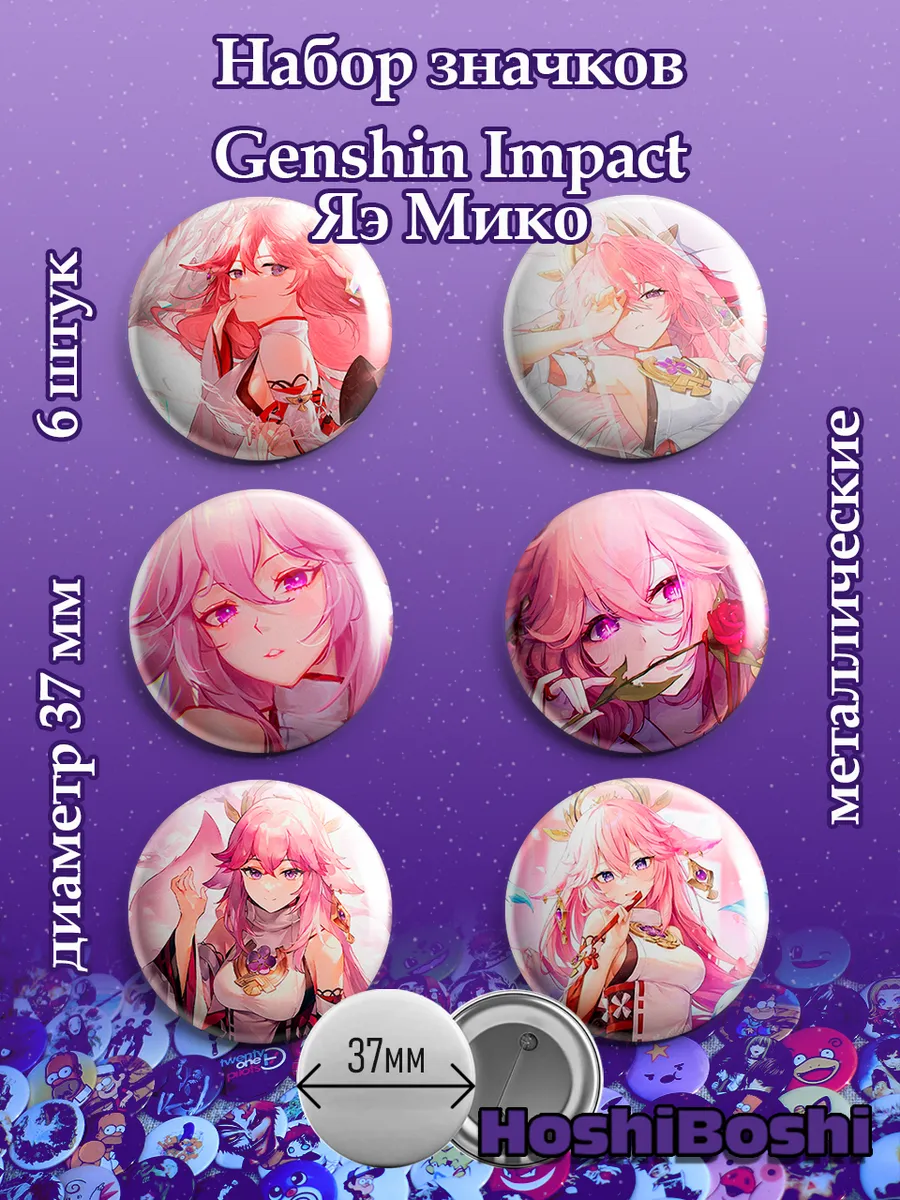 Набор из 6 металлических значков с изображениями из игры Геншин Импакт ( Genshin Impact ).