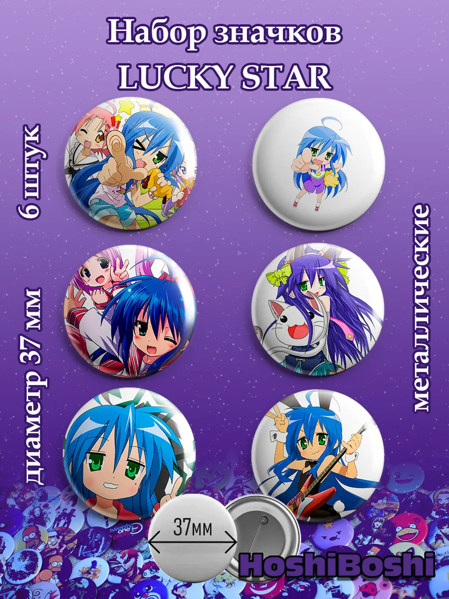 Набор из 6 металлических значков с изображениями из аниме Лакки Стар ( Lucky Star ).