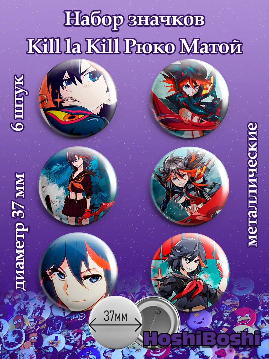 Набор из 6 металлических значков с изображениями из аниме Килл ла Килл ( Kiru ra kiru: KILL la KILL ).