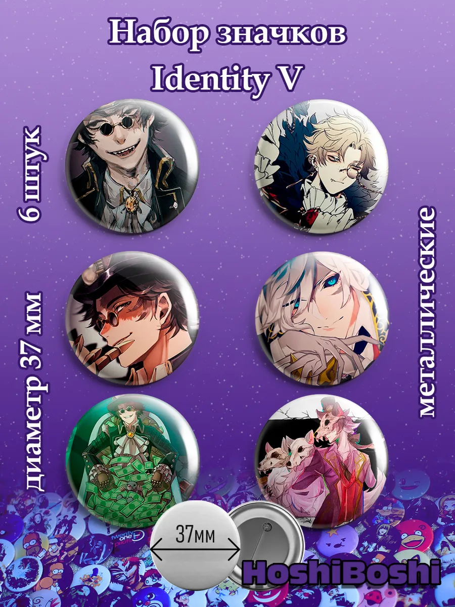 Набор из 6 металлических значков с изображениями из игры Идентити Файф ( Identity V ).