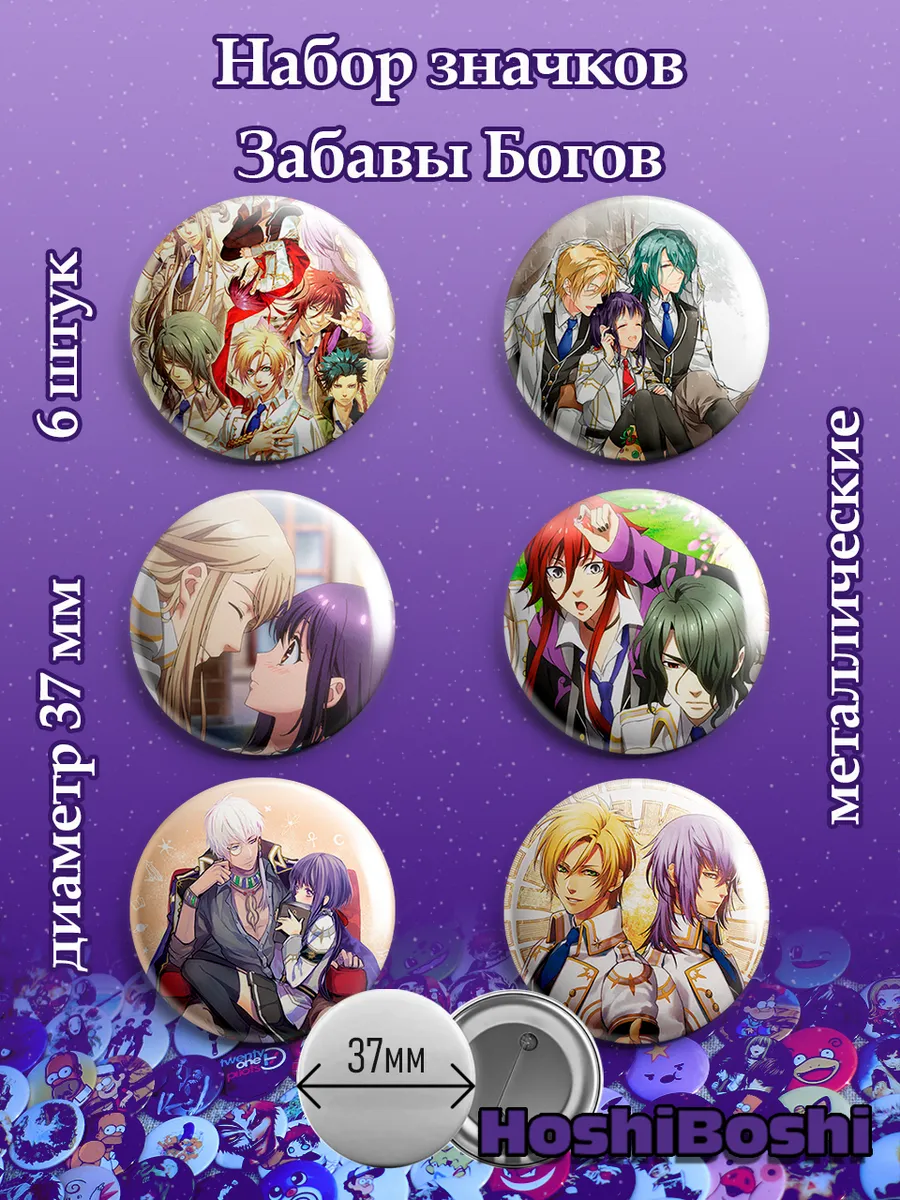 Набор из 6 металлических значков с изображениями из аниме Забавы Богов ( Kamigami no Asobi ).