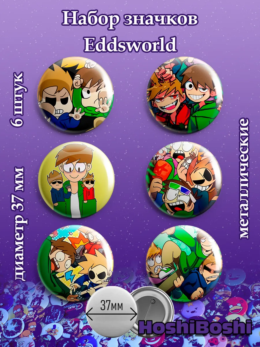 Набор из 6 металлических значков с изображениями из веб-сериала Эддсворлд ( Eddsworld ).