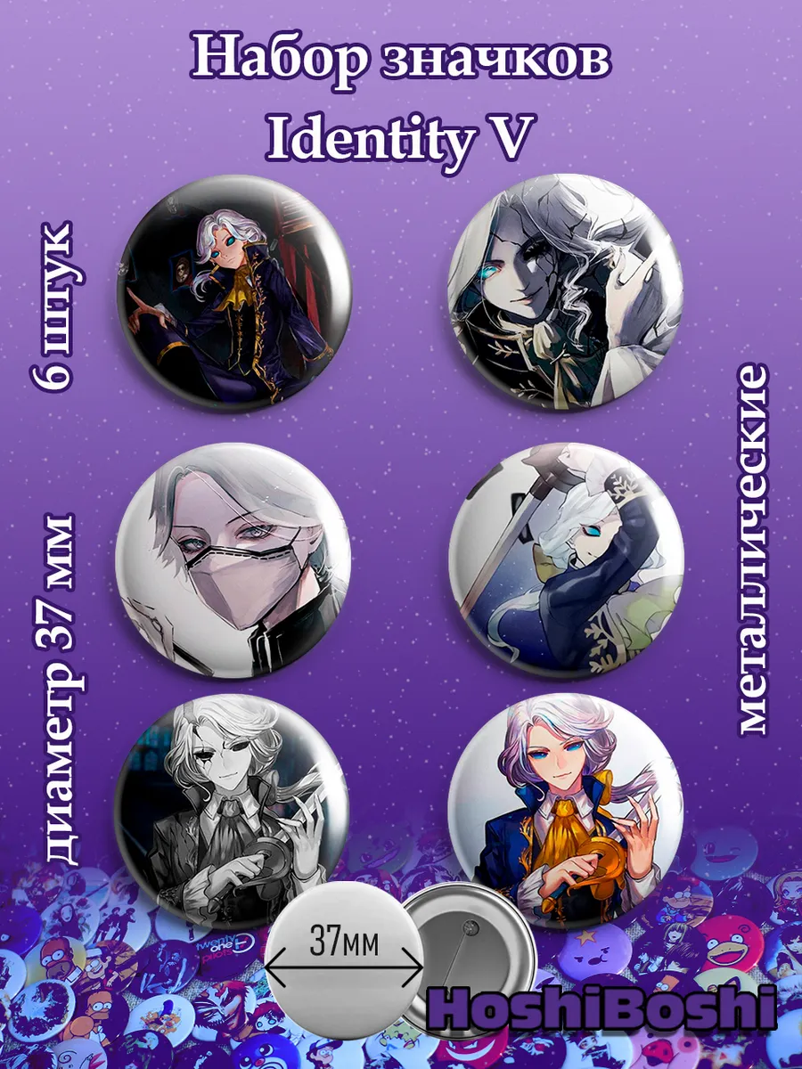 Набор из 6 металлических значков с изображениями из игры Идентити Файф ( Identity V ).