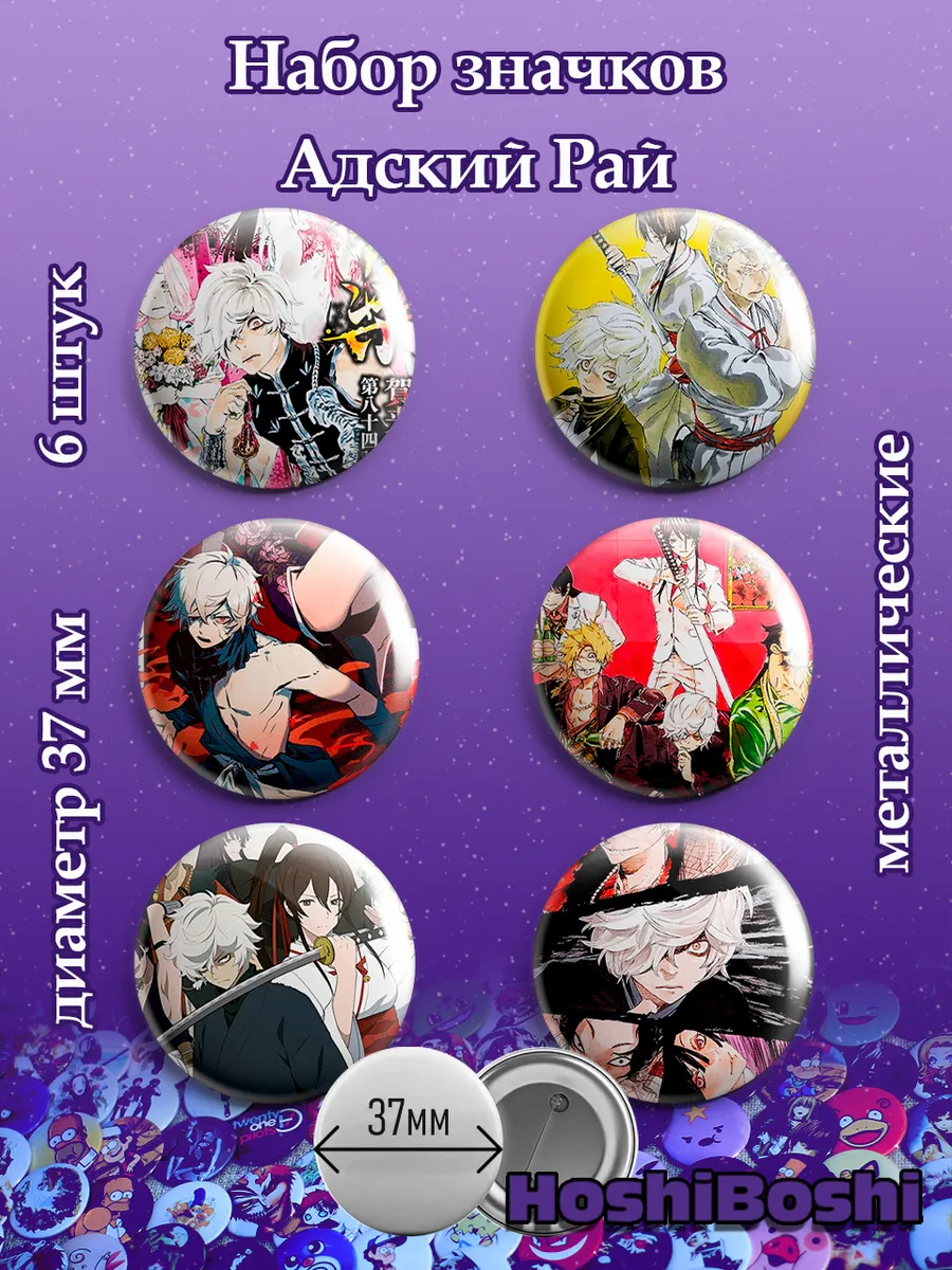 Набор из 6 металлических значков с изображениями из аниме Адский Рай ( Hell's Paradise: Jigokuraku ).