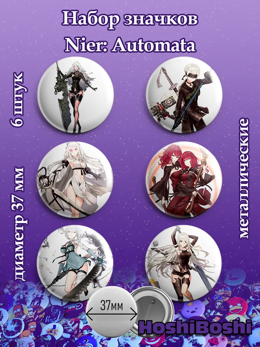 Набор из 6 металлических значков с изображениями из игры Ниер Автомата ( Nier: Automata ).