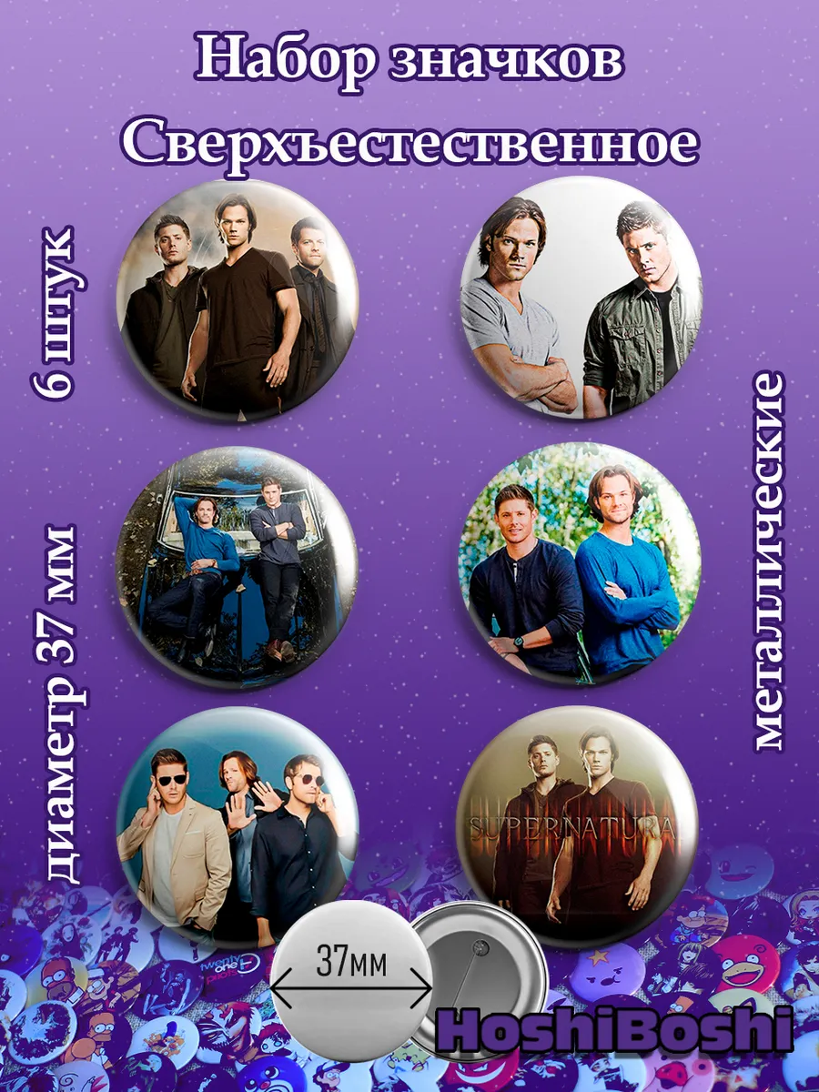 Набор из 6 металлических значков с изображениями из сериала Сверхъестественное ( Supernatural ).