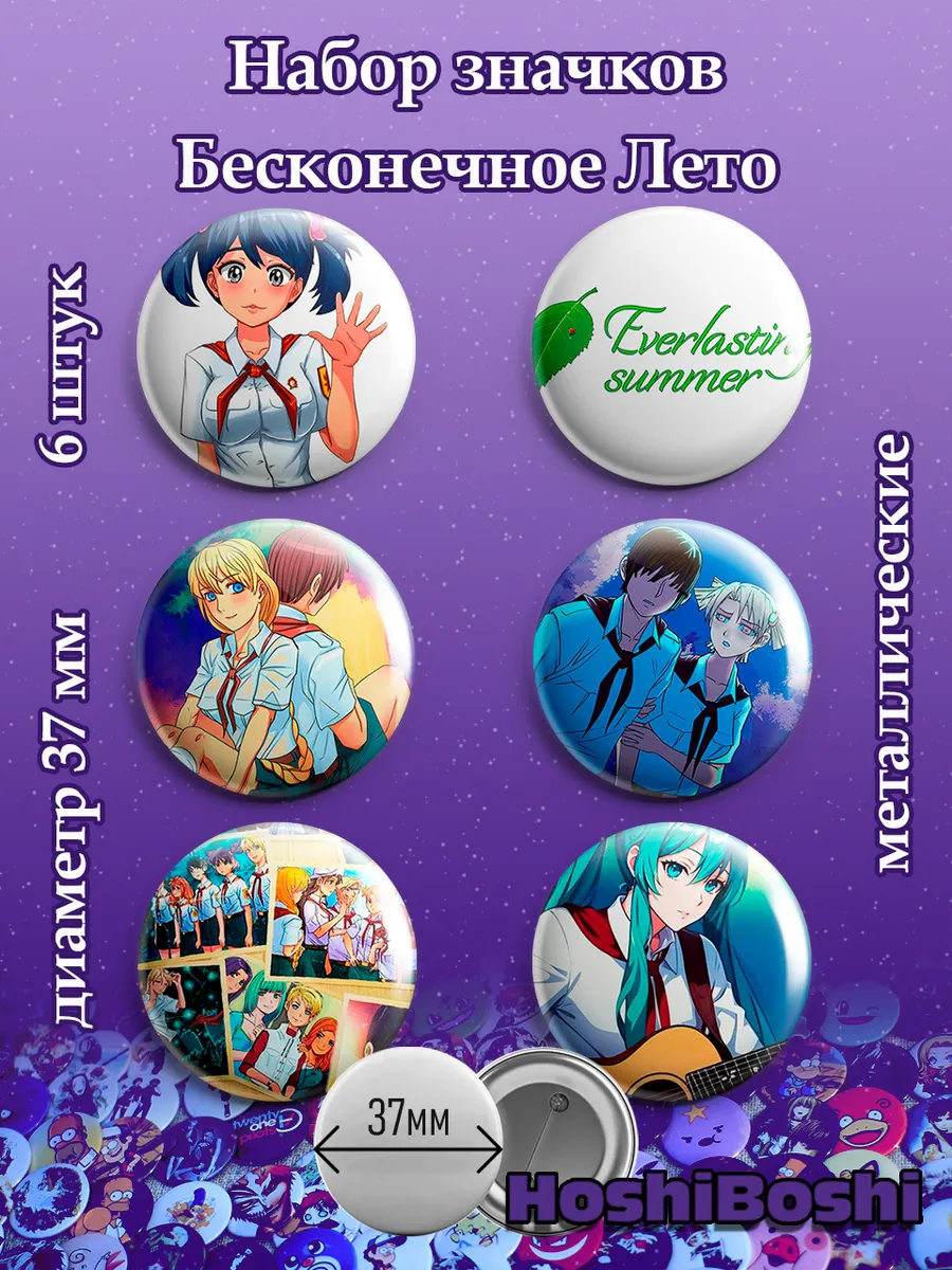 Набор из 6 металлических значков с изображениями из игры Бесконечное Лето ( Everlasting Summer ).