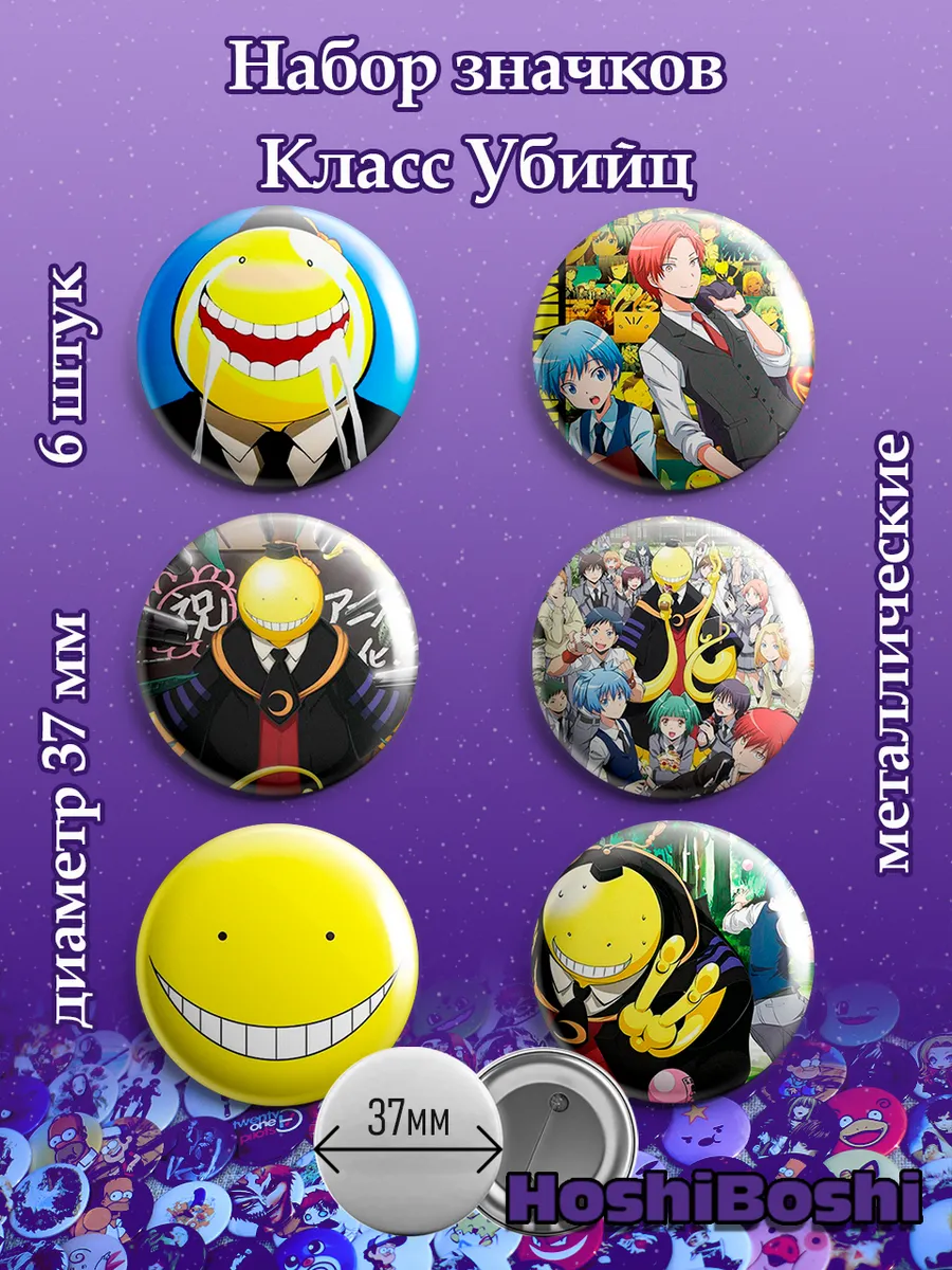 Набор из 6 металлических значков с изображениями из аниме Класс Убийц ( Ansatsu Kyoushitsu Assassination Classroom ).