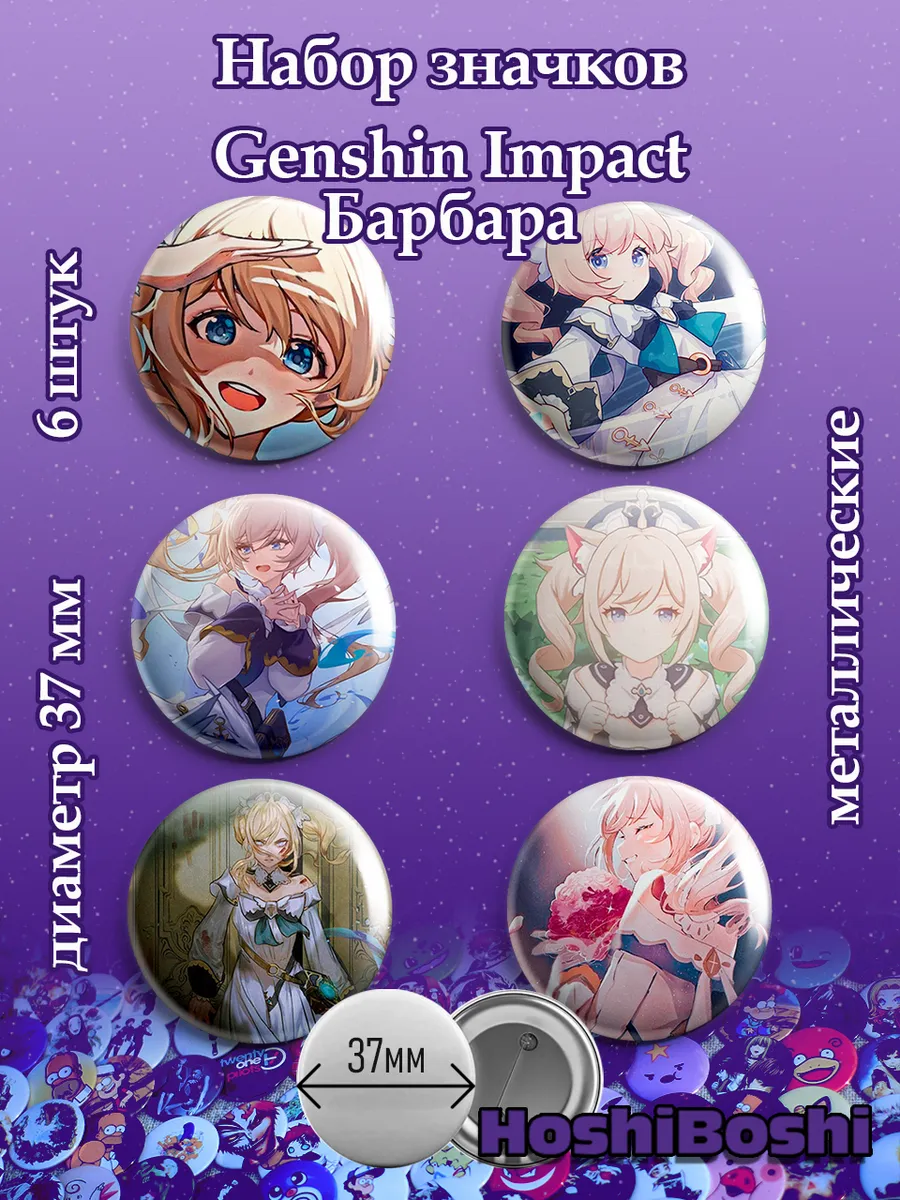 Набор из 6 металлических значков с изображениями из игры Геншин Импакт ( Genshin Impact ).