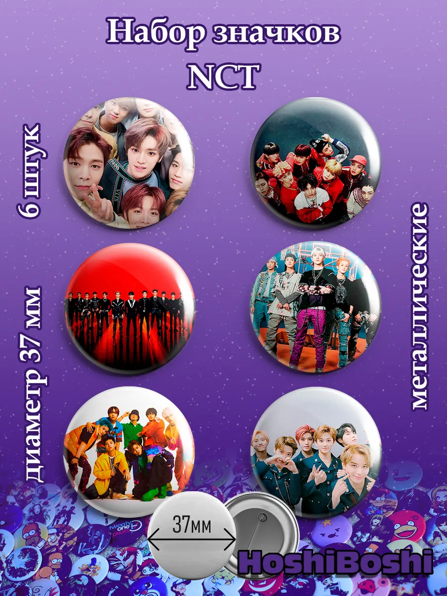 Набор из 6 металлических значков с изображениями с Кей-Поп группой НСТ ( NCT ).