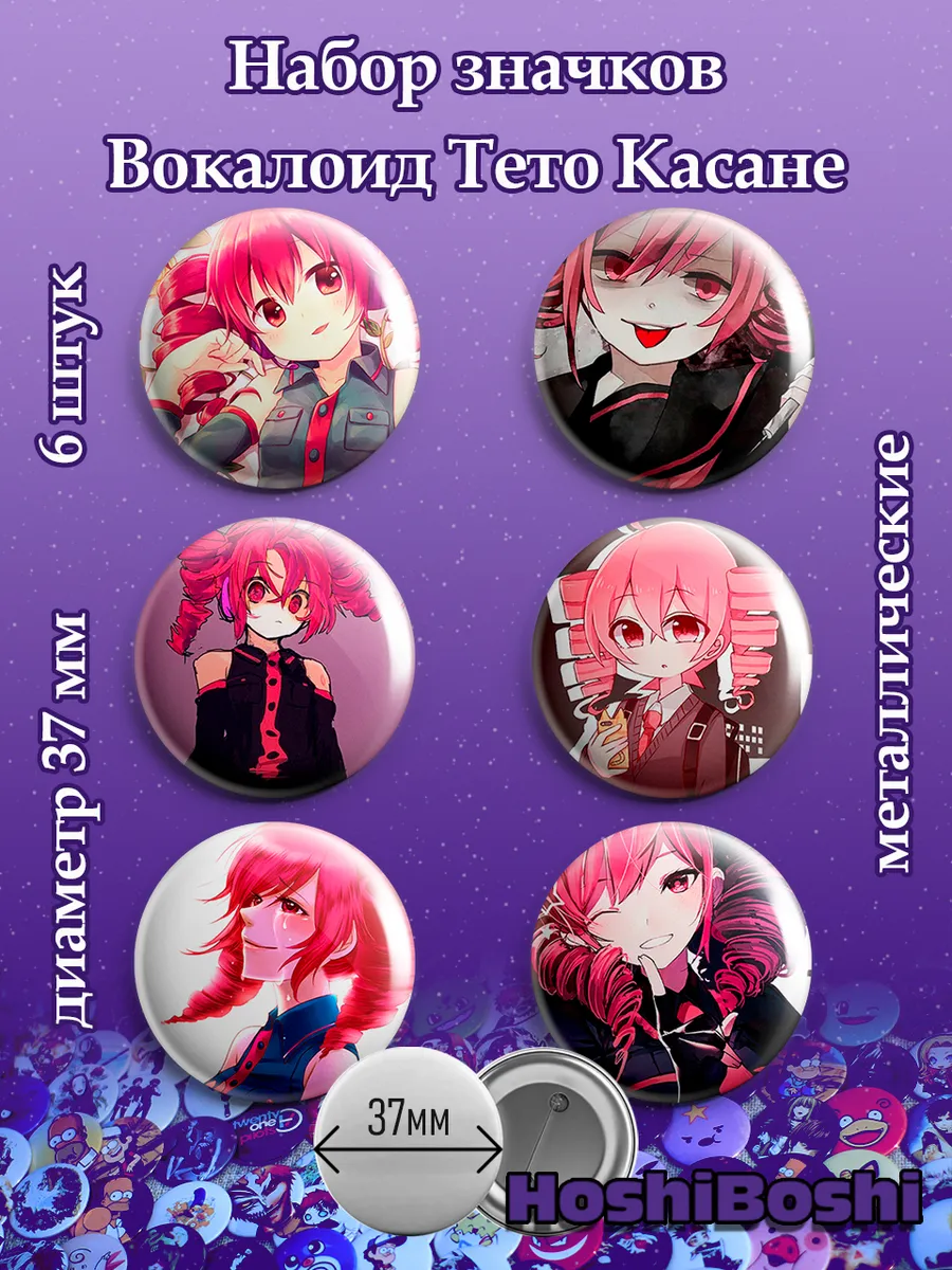 Набор из 6 металлических значков с изображениями Вокалоидов ( Vocaloid ).