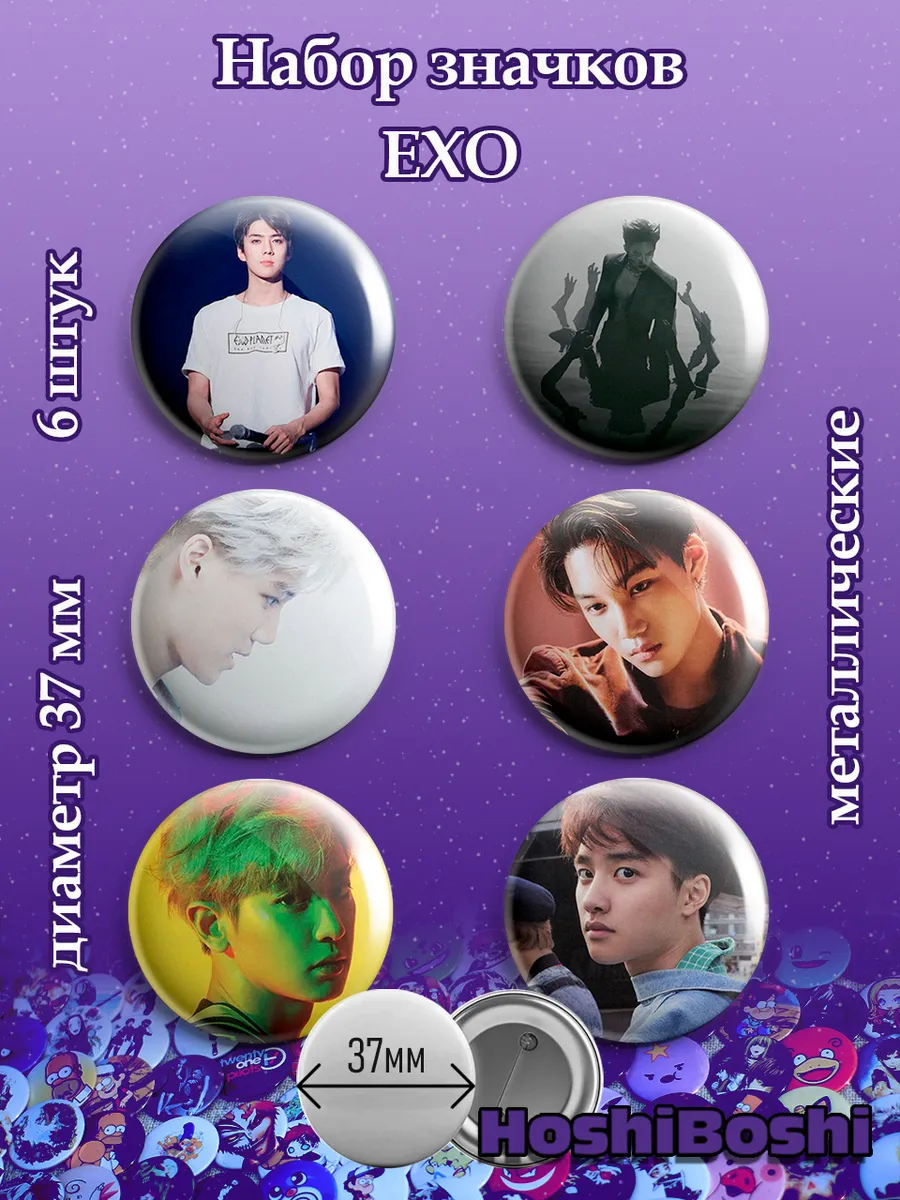 Набор из 6 металлических значков с изображениями с Кей-поп группой Экзо ( EXO ).