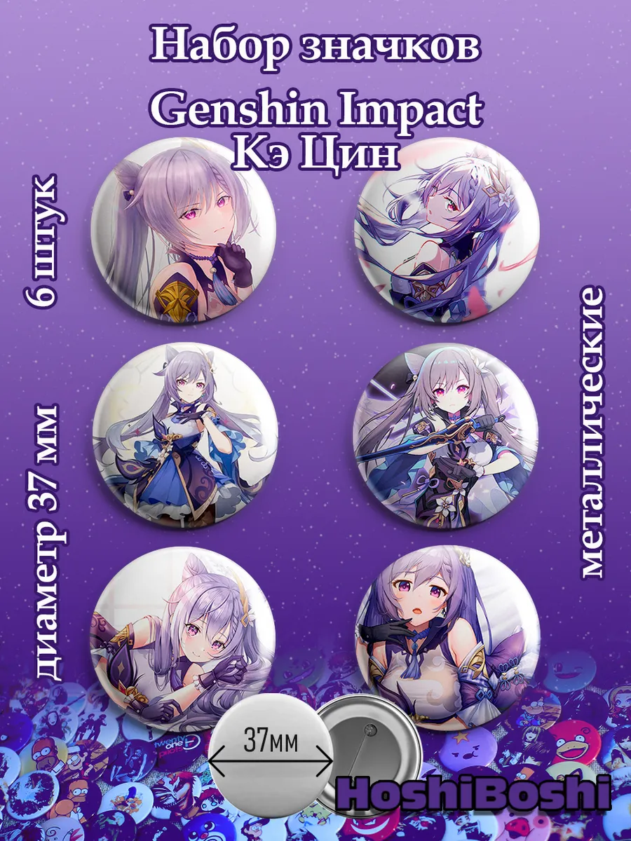 Набор из 6 металлических значков с изображениями из игры Геншин Импакт ( Genshin Impact ).