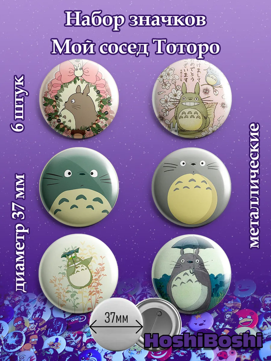 Набор из 6 металлических значков с изображениями вселенная Хаяо Миядзаки ( Hayao Miyazaki ).