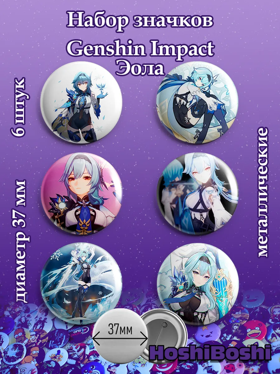 Набор из 6 металлических значков с изображениями из игры Геншин Импакт ( Genshin Impact ).