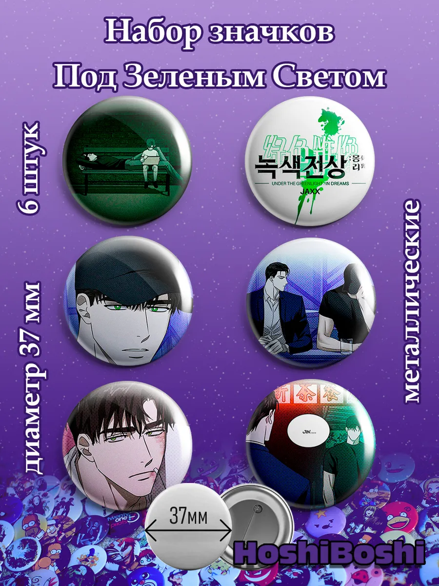 Набор из 6 металлических значков с изображениями из манхвы Под зеленым светом ( Under the Greenlight ).