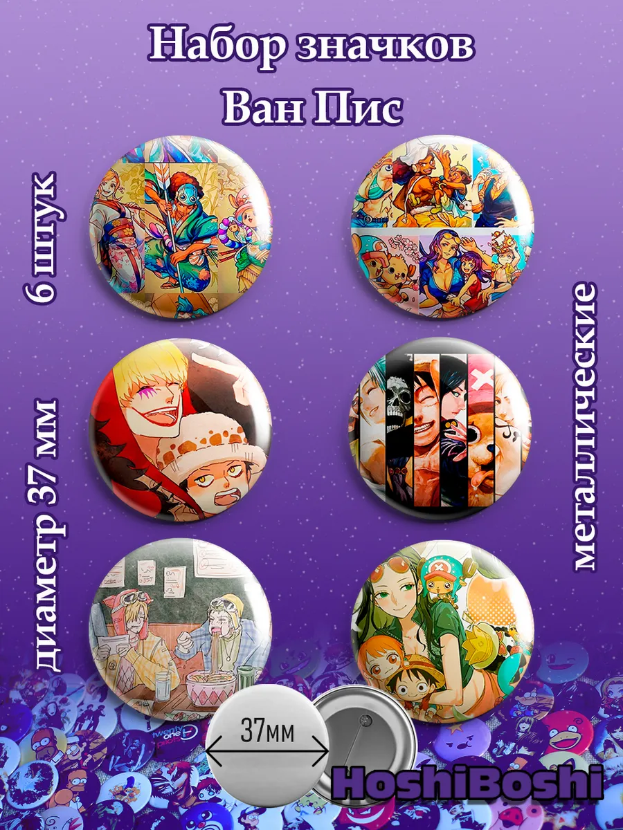 Набор из 6 металлических значков с изображениями из аниме Ван Пис ( One Piece ).