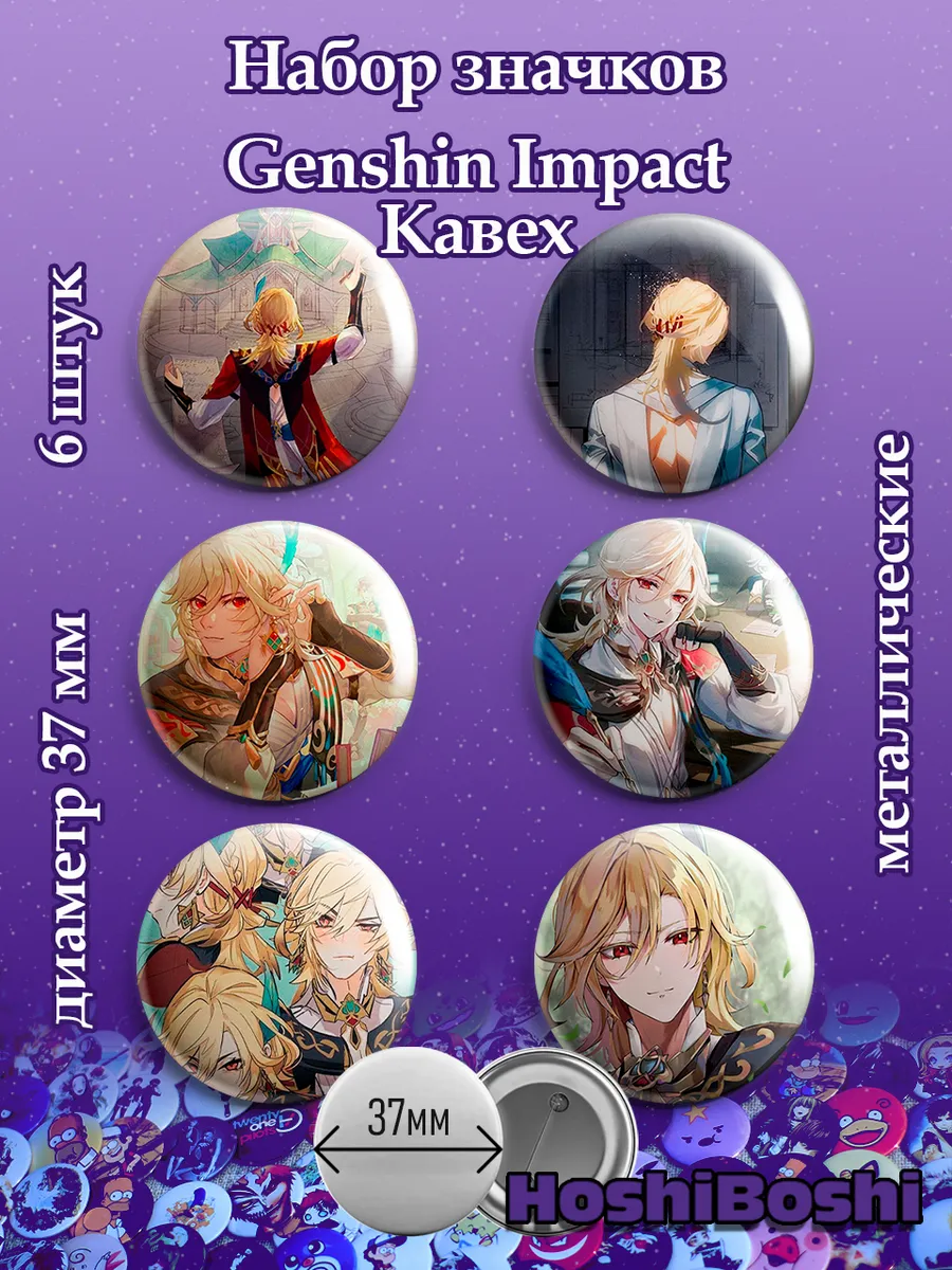 Набор из 6 металлических значков с изображениями из игры Геншин Импакт ( Genshin Impact ).
