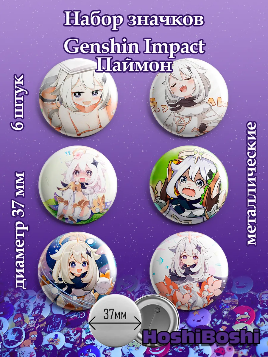 Набор из 6 металлических значков с изображениями из игры Геншин Импакт ( Genshin Impact ).