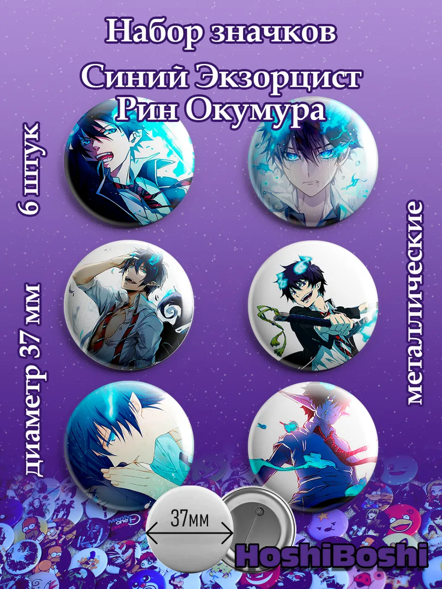 Набор из 6 металлических значков с изображениями из аниме Синий Экзорцист ( Blue Exorcist ).
