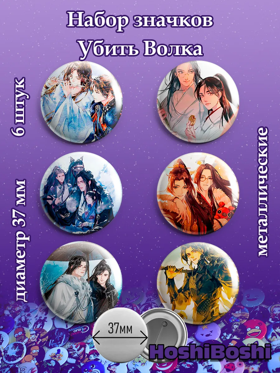 Набор из 6 металлических значков с изображениями из манхвы Убить волка ( Killing the wolf ).