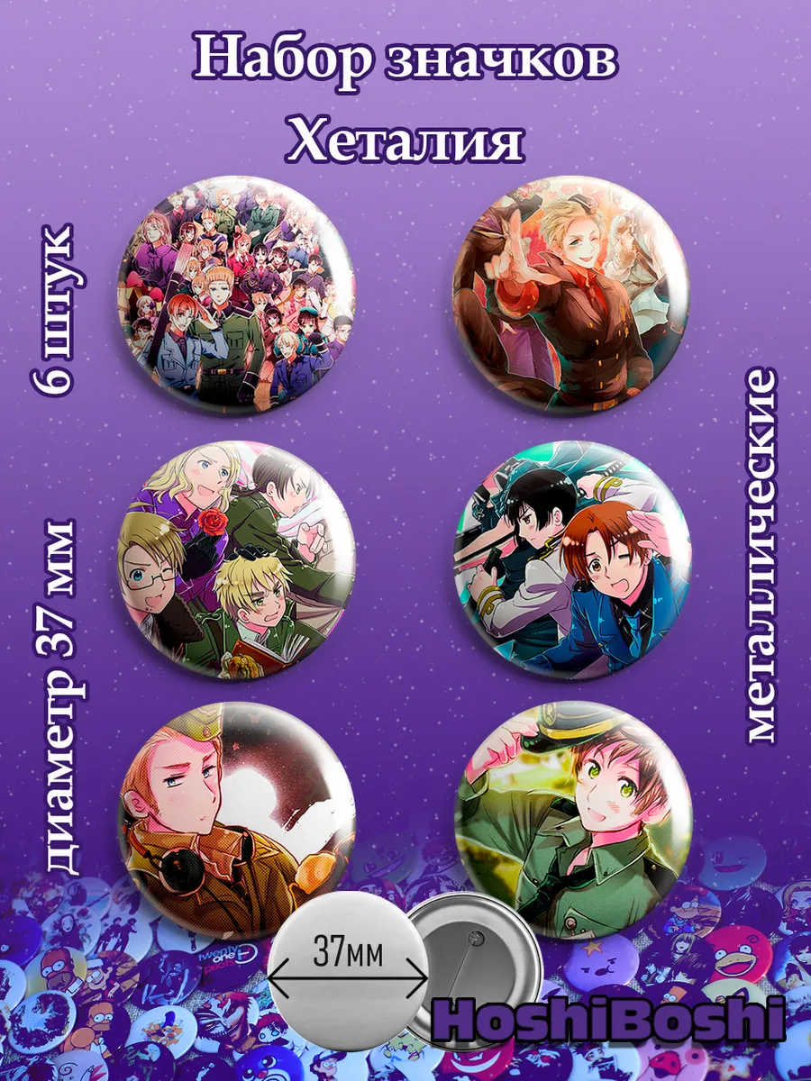 Набор из 6 металлических значков с изображениями из аниме Хеталия и Страны Оси ( Hetalia: Axis Powers ).