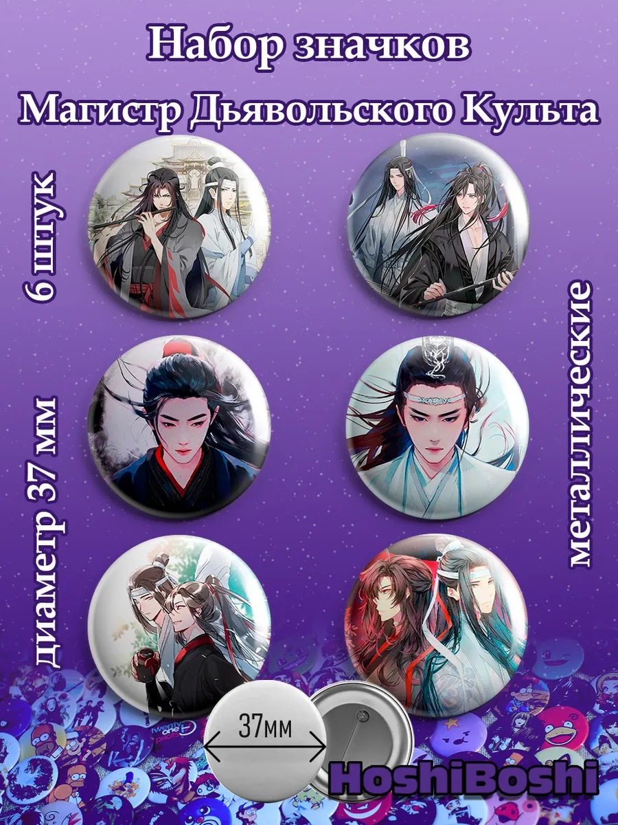 Набор из 6 металлических значков с изображениями из аниме Магистр Дьявольского Культа ( Mo Dao Zu Shi ).
