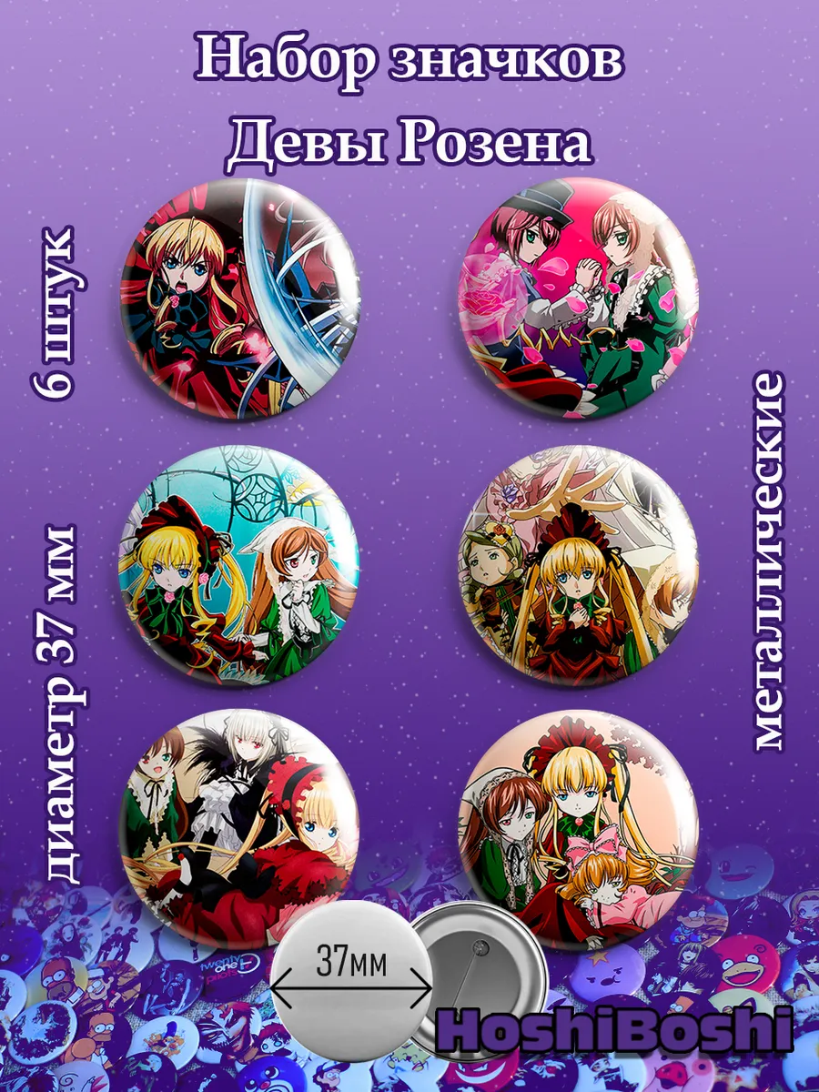 Набор из 6 металлических значков с изображениями из аниме Девы Розена ( Rozen Maiden ).