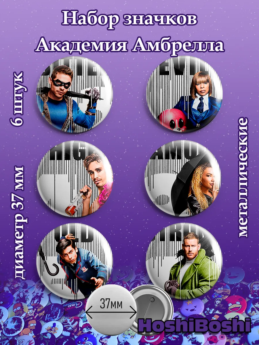 Набор из 6 металлических значков с изображениями из сериала Академия Амбрелла ( The Umbrella Academy ).