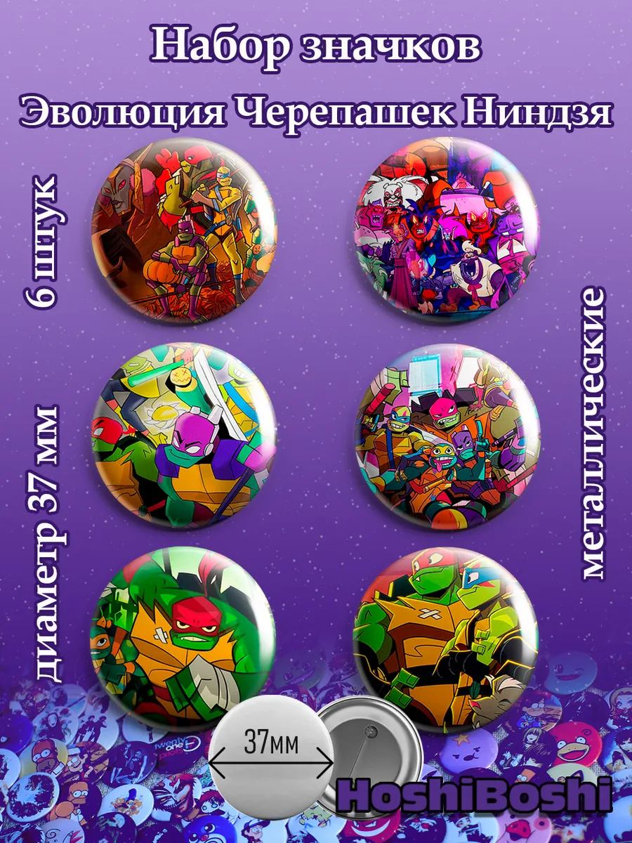 Набор из 6 металлических значков с изображениями из сериала Эволюция Черепашек Ниндзя ( Rise of the Teenage Mutant Ninja Turtles ).