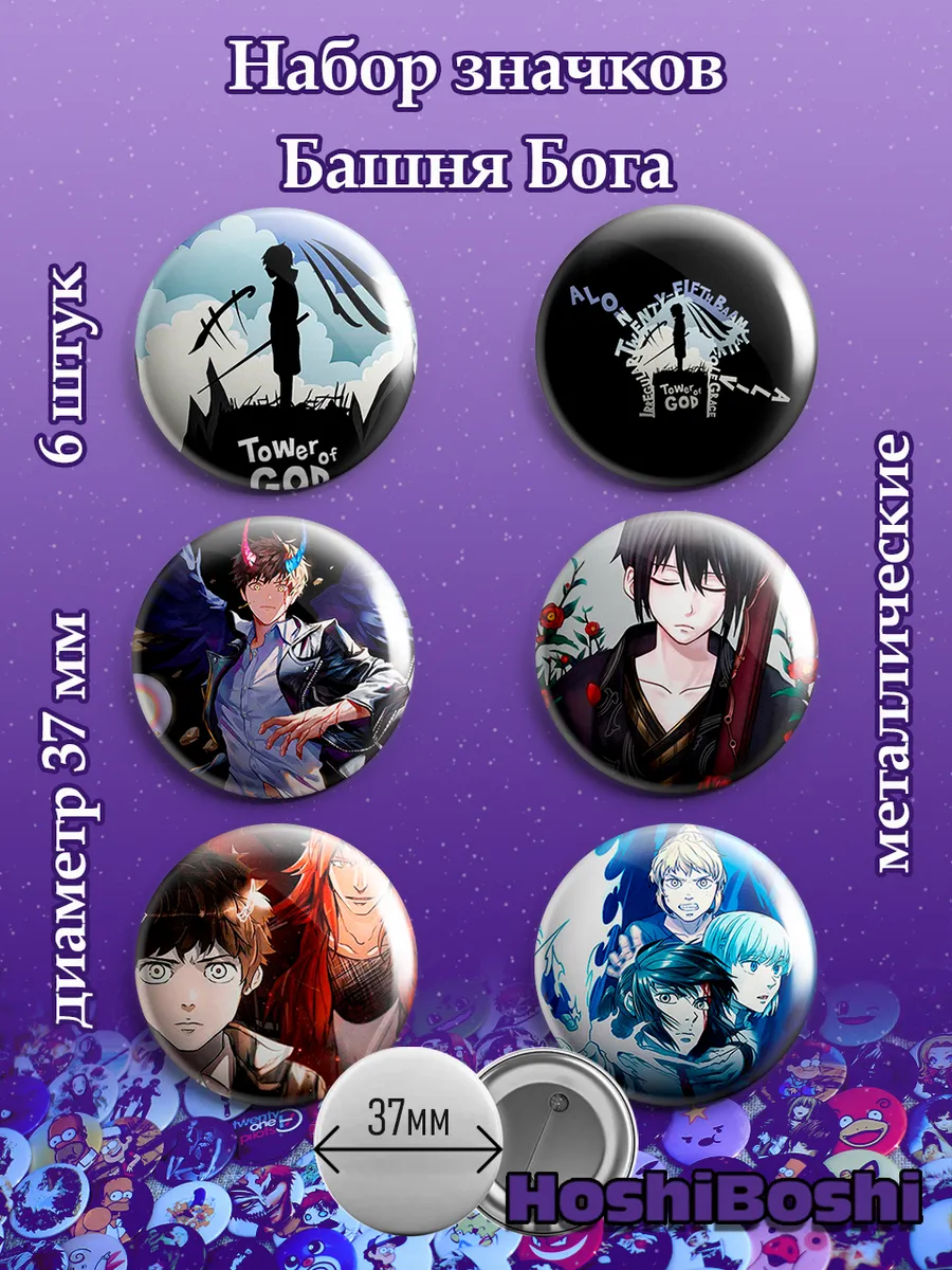 Набор из 6 металлических значков с изображениями из аниме Башня Бога ( Tower of God ).