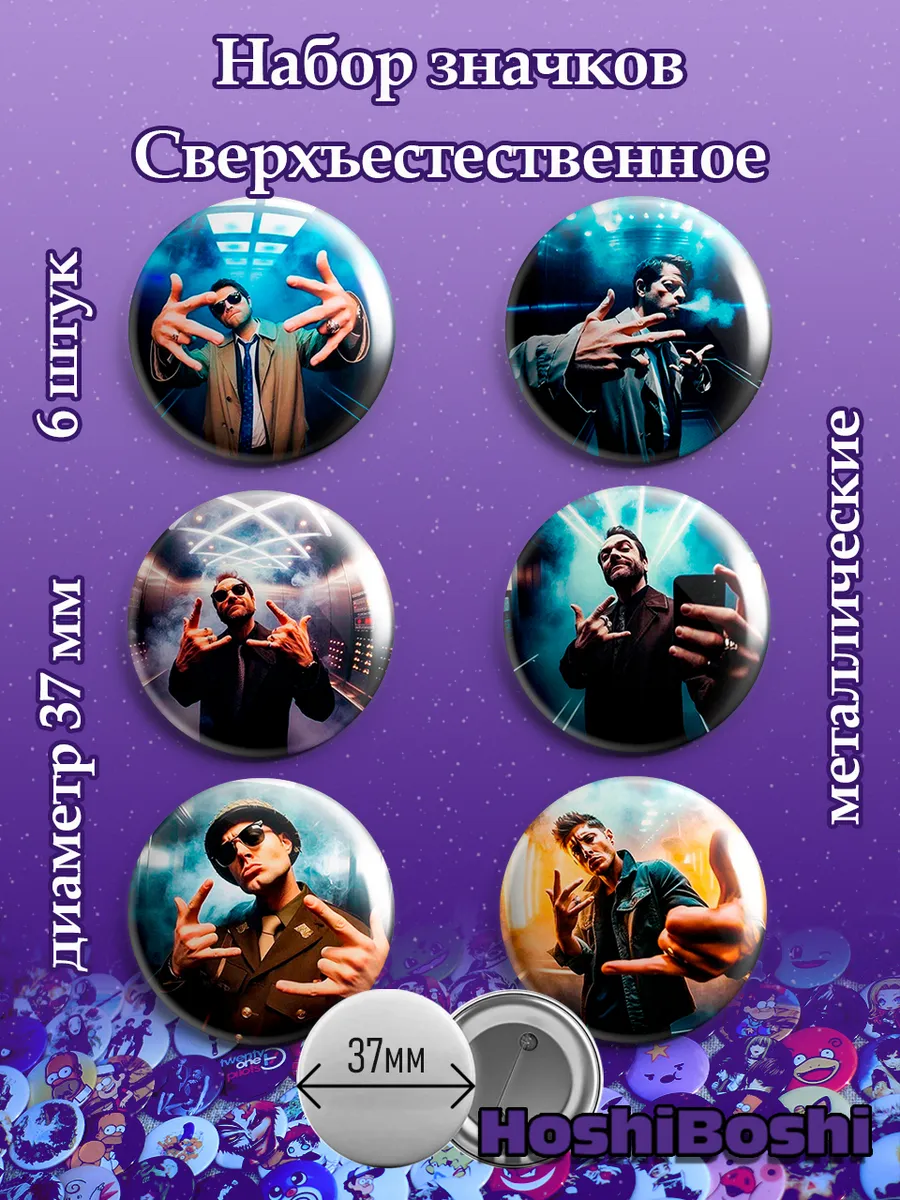 Набор из 6 металлических значков с изображениями из сериала Сверхъестественное ( Supernatural ).